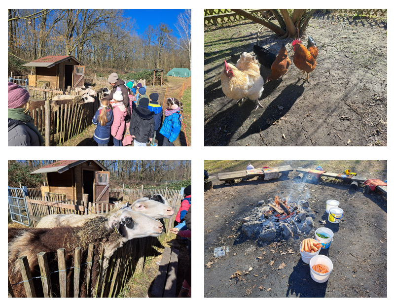 In regelmäßigen Abständen und in unterschiedlicher Besetzung pilgern wir mit großer Besgeisterung ins Freilandlabor Zehlendorf. Dort warten immer viele Aufgaben auf uns, je nach Jahreszeit. Wir helfen beim Melken der Schafe, misten Ställe aus, harken das Laub zusammen, stellen Hühnerfutter her, bearbeiten Schafswolle, lernen alles Wissenswerte über die Tiere und die Pflanzen auf dem Gelände, keschern im Teich, beobachten Tiere und sitzen am gemütlichen Lagerfeuer, picknicken und sind dankbar, dass es diese Oase mitten in Zehlendorf gibt. Ein großes Dankeschön an das Freilandlabor-Team!