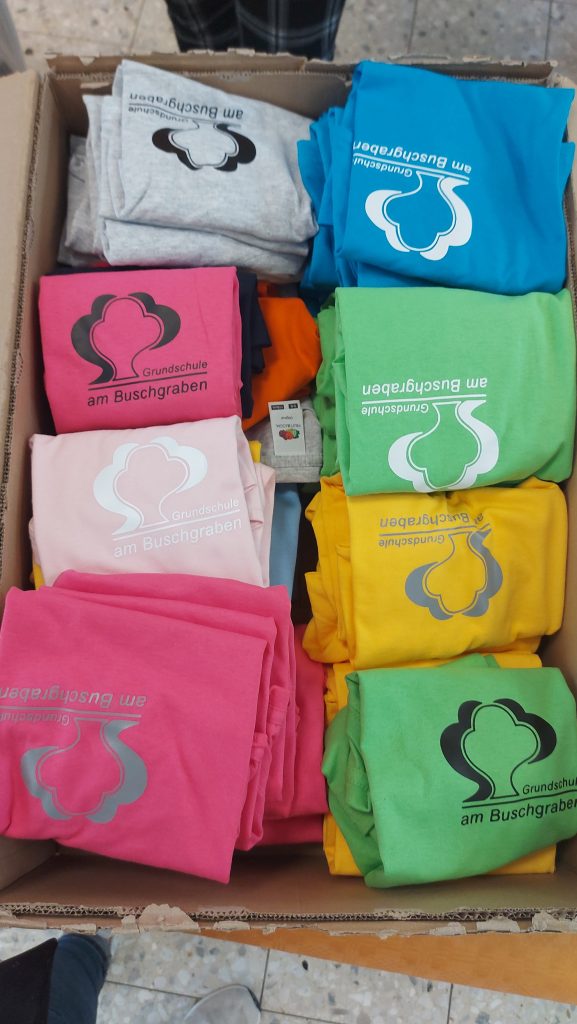 Ob T-Shirts, Hoodies, Turnbeutel oder Tragetaschen – mit dem Schullogo zeigen unsere Kinder und Eltern stolz ihre Zugehörigkeit zur Grundschule am Buschgraben.