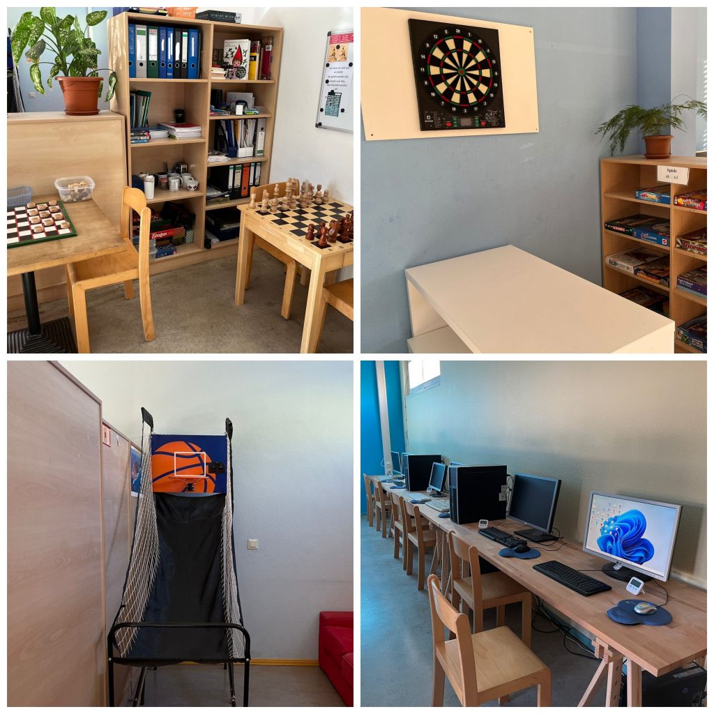 Wir haben eine Dartscheibe, indoor Basketball, Tischkicker und Schachbretter, für jeden ist etwas dabei.